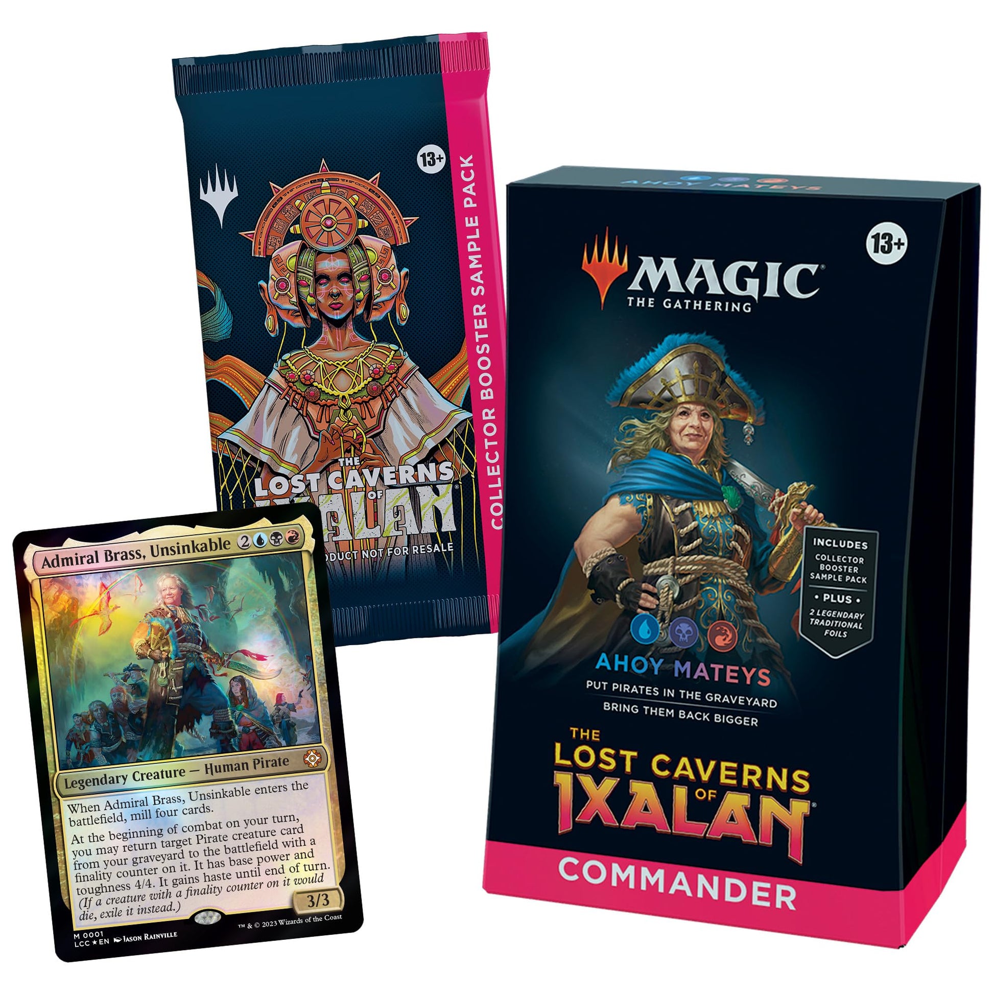 - CONTENTS—1 ready-to-play Ahoy Mateys The Lost Caverns of Ixalan Commander Deck (includes 2 Foil Legendary cards), a 2-card Collector Booster Sample Pack, 1 Foil-Etched Display Commander, 10 double-sided tokens, 1 life tracker, and 1 deck box