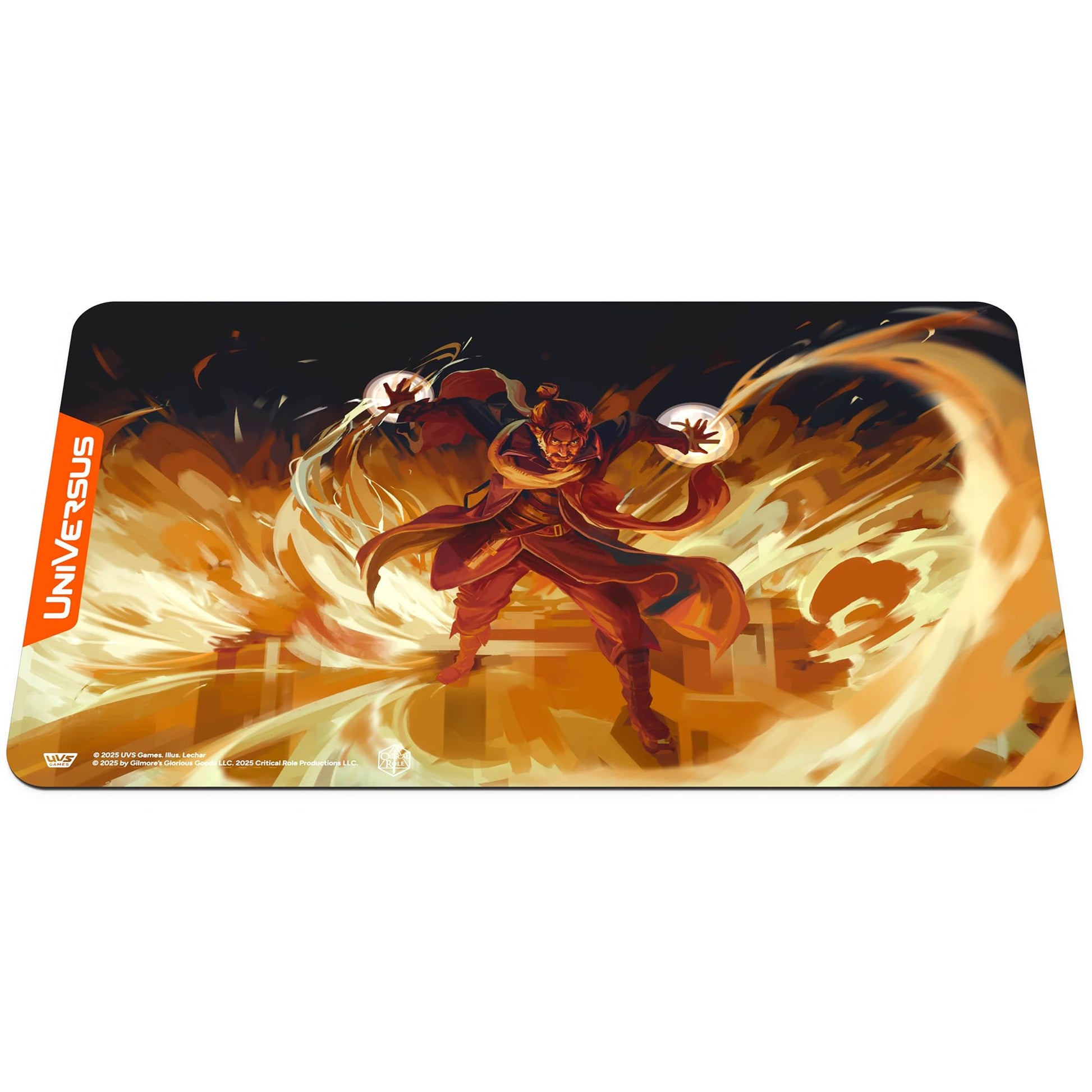 Details: CRITICAL ROLE: HEROES OF EXANDRIA - PLAYMAT - CALEB WIDOGAST - Keep your cards safe and show them off in style with this brand new playmat featuring Caleb Widogast of The Mighty Nein! One of 4 different playmats created for the release of the Critical Role: Heroes of Exandria Booster Set! The mat is made from high quality neoprene and features a rubber backing to help keep the mat in place while you play. Laid out the playmat measures 24 inches x 14 inches. The stunning artwork will help take your game to the next level and give a more immersive experience. Accessory to be used with The UniVersus Critical Role: Heroes of Exandria card game. Includes: (1) 24 x 14 inch neoprene playmat.