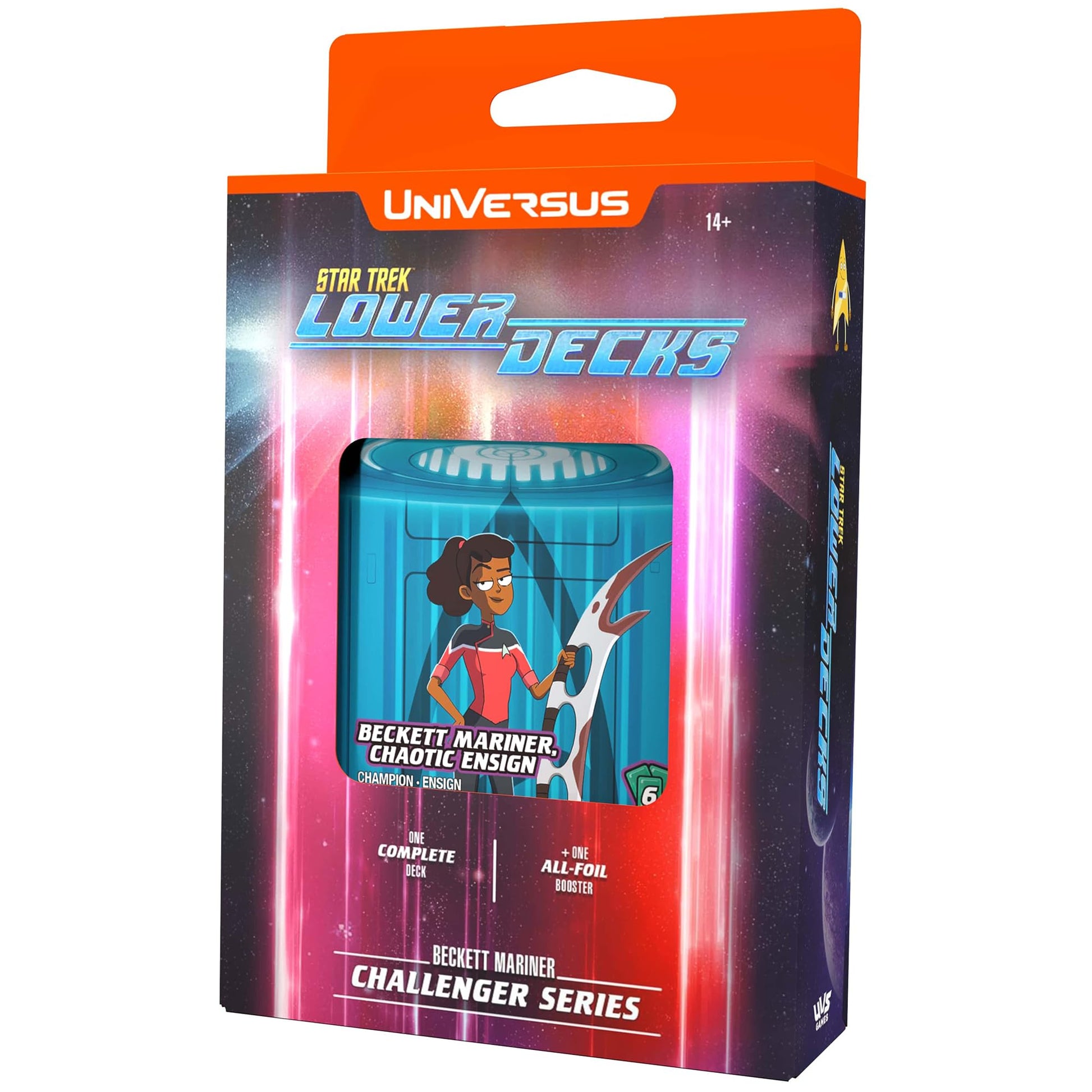 Details: UNIVERSUS STAR TREK LOWER DECKS: CHALLENGER SERIES - MARINER - Get ready to explore strange new worlds and boldly go where no one has gone before! Join the lower-deck crew with the STAR TREK Lower Decks Challenger Series. This 60-card deck is ready to play right out of the box, featuring Beckett Mariner from the U.S.S. Cerritos. Each deck includes two different character cards of Beckett Mariner, a 6-card collector booster pack with 6 random foil cards with alt-art or parallel foil versions of cards from the Challenger Series release, and a booklet with a card checklist and information for new players.